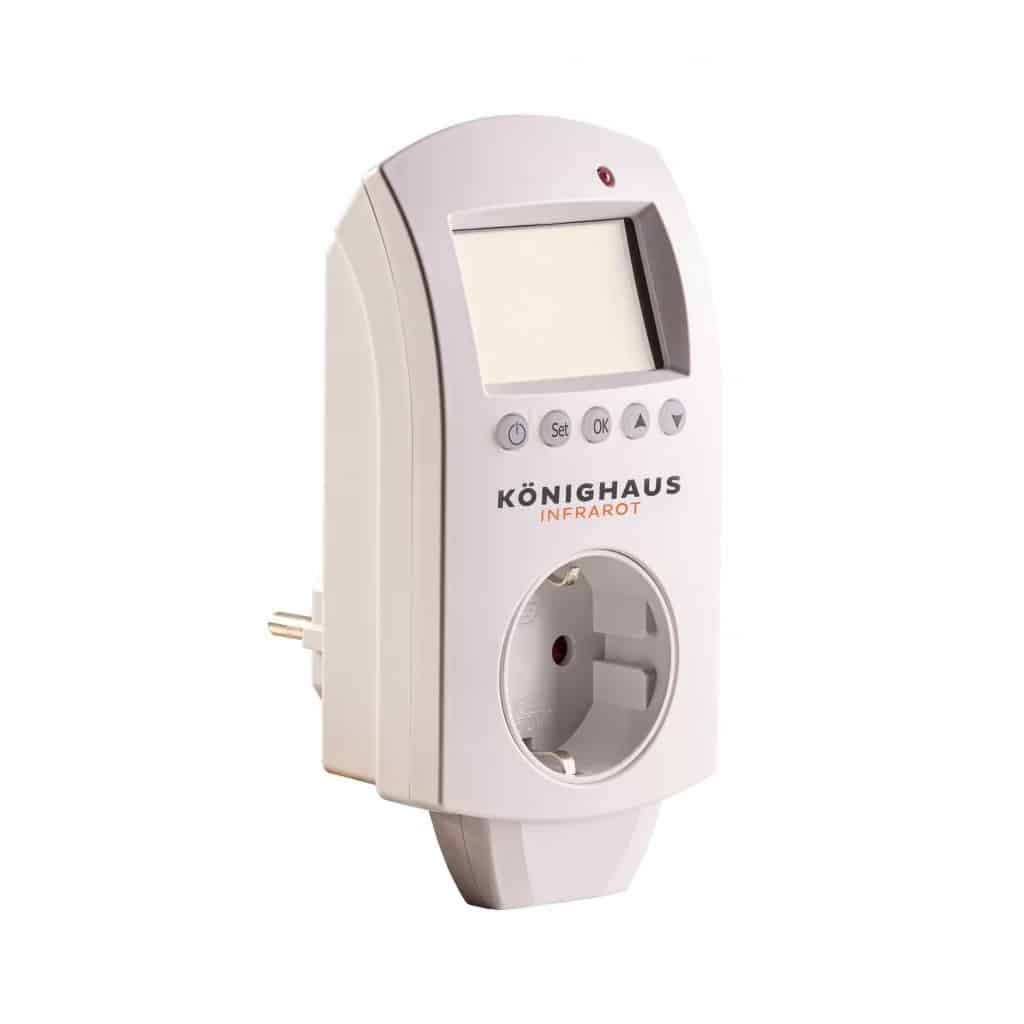 Met de Königshaus stekker thermostaat regel jij moeiteloos de temperatuur van je infraroodpanelen of elektrische kachel. Steek hem in het stopcontact, stel de gewenste temperatuur in en geniet direct van comfortabele warmte, zonder onnodig energieverbruik. Inclusief instelbaar weekprogramma voor extra gemak.