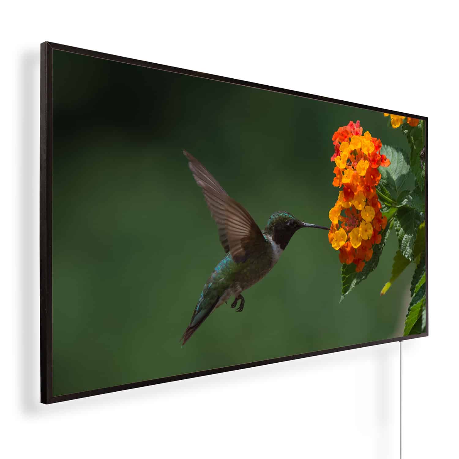 Vliegende kolibrie en bloemen | 450 tot 1200 Watt | Witte of zwarte lijst